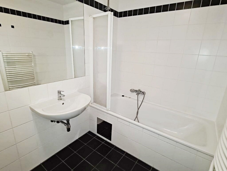 + Bad mit Badewanne, Waschtisch und Waschmaschinenanschluss