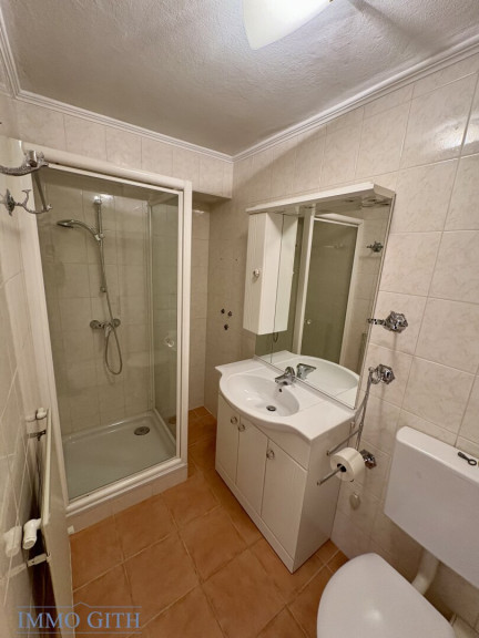 Die Wohnung befindet sich im 3. Stock und bietet 1 großzügiges Vorzimmer, 1 großes Wohnzimmer, 1 geräumiges Schlafzimmer mit Klimaanlage, 1 separate Küche mit Speisekammer, 2 moderne Bäder (1x mit Badewanne + Dusche, Waschbecken und WC; 1x mit Dusche, Waschbecken und WC), 1 begehbaren Kleiderschrank und 1 Abstellraum mit Waschmaschinenanschluss. Im Vorzimmer kann bei Bedarf 1 Zimmer (Arbeitszimmer/Kinderzimmer) abgetrennt werden.