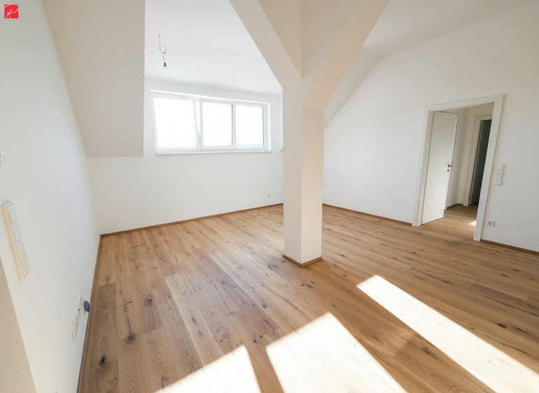 Diese moderne Dachgeschosswohnung besticht durch ihr lichtdurchflutetes Raumgefühl – trotz Dachschrägen entsteht dank hoher Decken ein offenes und großzügiges Ambiente. Der Wohnraum ist klar und praktisch aufgeteilt, das separate Schlafzimmer bietet Ruhe, und der große Abstellraum lässt sich ideal als Schrank- oder Ankleideraum nutzen.