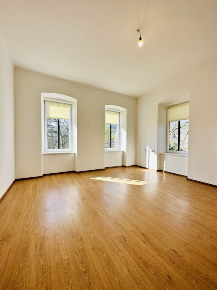 Die Wohnung ist zentral begehbar und durch die hohen Fenster kommt viel Licht in die Räumlichkeiten.