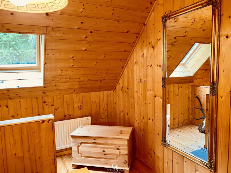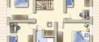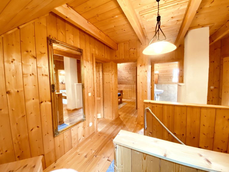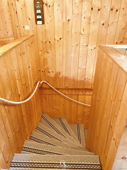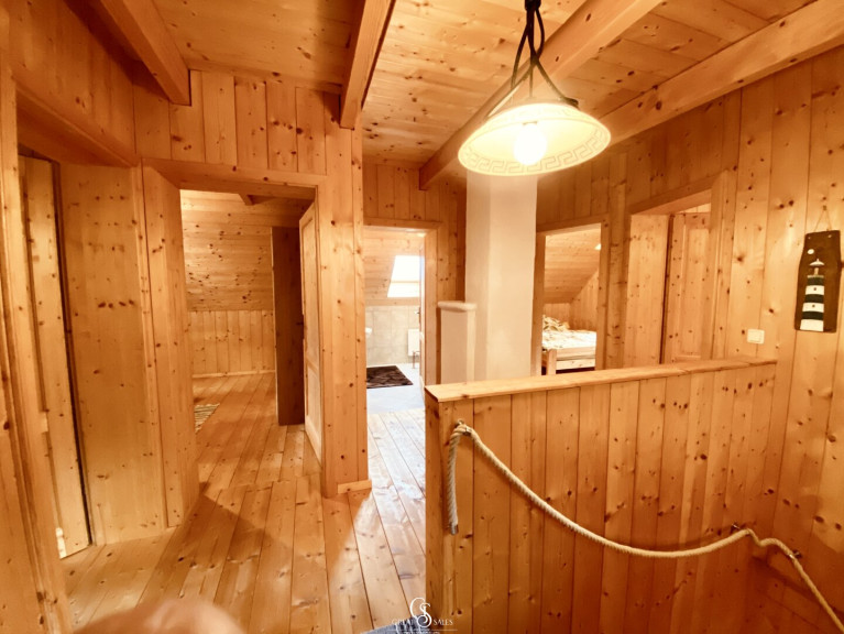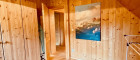 Im Obergeschoss erwartet Sie ein Vorraum, der dank des Kachelofen-Anteils angenehm beheizt wird. Vier Schlafzimmer– jeweils mit Doppelbett (1,80 m x 2,00 m), Kleiderschrank und Nachttischen – sorgen für erholsame Nächte. Alle Fenster sind mit Rollläden ausgestattet, die vollständige Verdunkelung ermöglichen. Ein weiteres Badezimmer mit Dusche, Waschbecken und Waschmaschinenanschluss ergänzt das Raumangebot.