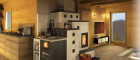 Beheizt wird das Haus wahlweise über den Kachelofen oder Elektro-Radiatoren. Ein Boiler sorgt für die Warmwasserversorgung.