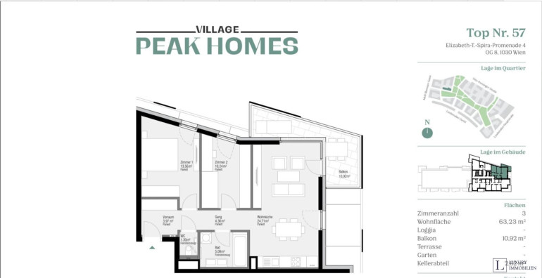 Diese moderne 3-Zimmer-Wohnung mit einer Wohnfläche von 63 m² befindet sich in einem zeitgemäßen Wohnkomplex in ausgezeichneter und verkehrsgünstiger Lage in Wien.