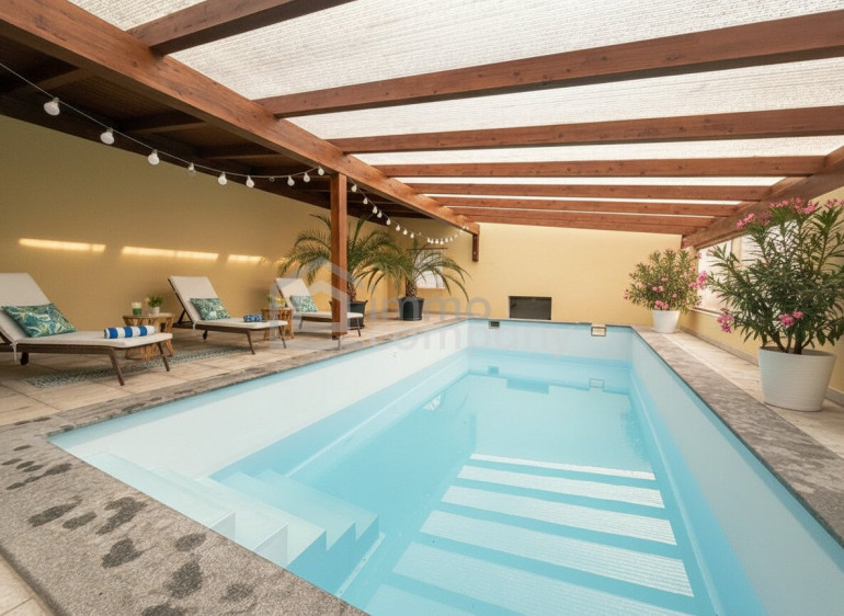 Ein besonderes Highlight dieser Immobilie ist das Poolhaus und der einladende Garten, der Ihnen nicht nur einen Rückzugsort im Freien bietet, sondern auch Raum für gesellige Zusammenkünfte mit Freunden und Familie bietet. Genießen Sie entspannte Stunden auf der Loggia oder dem Balkon, während Sie den Blick in die Umgebung schweifen lassen.