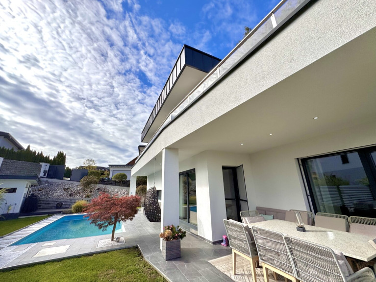 Ein Haus, das alle Register zieht: durchdachte Architektur, exklusive Ausstattung, viel Licht, viel Platz und ein Hauch von Luxus in jedem Detail. Kurz gesagt: ein Zuhause, das man nicht nur bewohnt, sondern lebt.