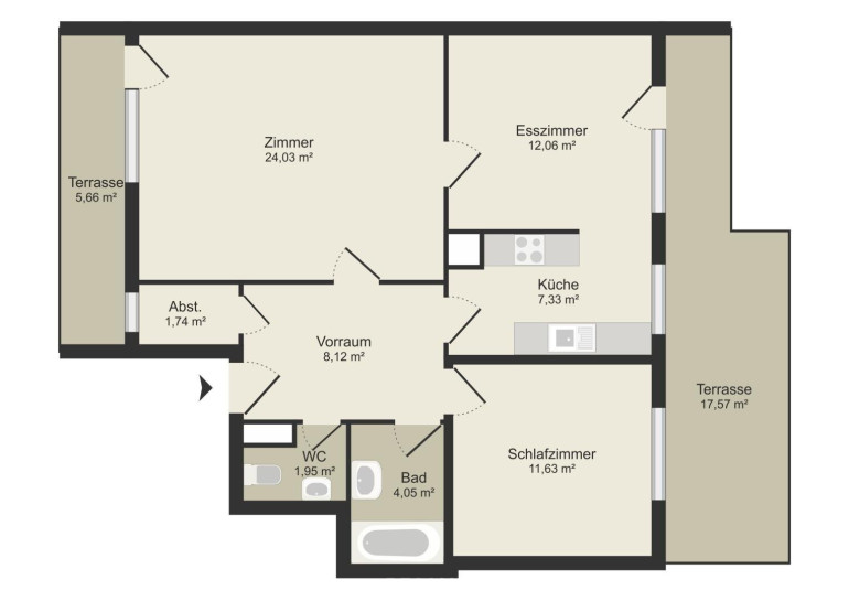 Die Wohnung selbst überzeugt mit einem klaren und zugleich vielseitigen Grundriss: Auf rund 70 m² erwarten Sie drei einladende Räume – Wohnen, Essen, Schlafen – dazu eine Küche, die nicht nur zum Kochen, sondern auch zum Leben einlädt: Platz für eine Bar, ein Homeoffice oder einfach für Ihre Ideen. Alle Räume sind getrennt begehbar.