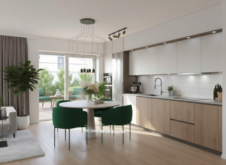Offene Küche / Essbereich /Wohnzimmer mit direktem Zugang zum Garten