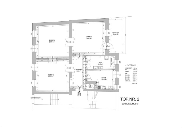 135,57 m² Wohnfläche + 12,52 m² Veranda