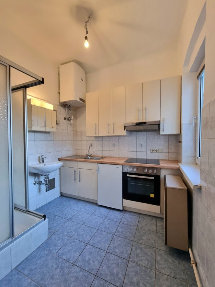 Raumaufteilung: Vorzimmer, WC, Küche mit Tageslichtfenster und Duschmöglichkeit, Wohnküche, Schlafzimmer.