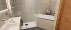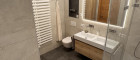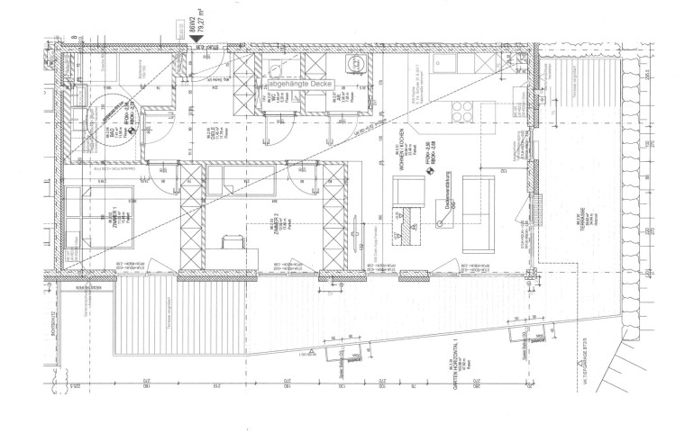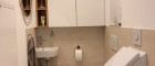 Rechts vom Haupteingangsbereich befindet sich das Badezimmer, mit großzügiger Dusche- wie auch separater Badewanne, Doppel-Waschbecken und WC. Links vom Eingang finden ein zweites, separates WC wie auch eine Waschküche ihren Platz und bieten zusätzlich abgetrennte Funktionalität. Neben zwei nahezu gleich großen Schlafzimmern ist das Herzstück der Wohnung der ca. 31m² große, offene Wohn-/Ess- und Kochbereich. Von diesem wie auch von den Einzelzimmern aus hat man Zugang auf die etwa 40m² große Terrasse, die in den 104m² großen Garten (+182m² geböschter Gartenfläche) übergeht.