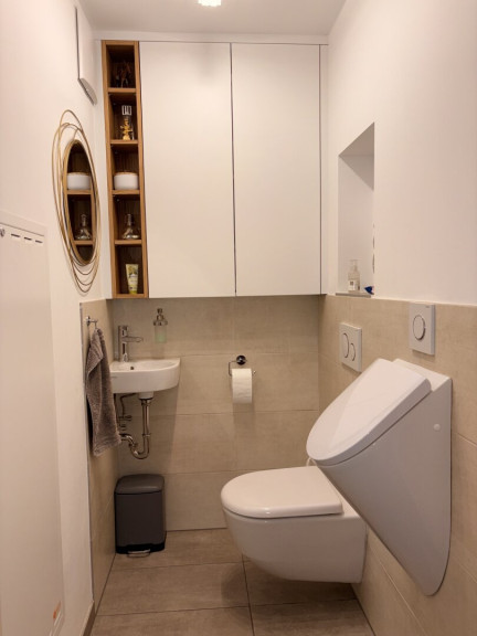 Ausgestattet ist die Wohnung mit hochwertigsten Belägen und Tischler-Möbeln, die im Verkaufspreis inkludiert sind. Von Echtholzparkett über exzellente Föger- Innenausstattung finden Sie den Allgemeinzustand der Wohnung in einer höchst gepflegten Weise vor.