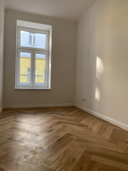 Die um 1900 erbaute Eckliegenschaft umfasst ein Erdgeschoss, drei Obergeschosse, ein ausgebautes Dachgeschoss und ein Kellergeschoss. Die Altbaufassade setzt sich auch im Inneren mit Stuck- und Stilelementen im Eingangsbereich und im Stiegenhaus fort. Das Apartment liegt im Erdgeschoß und ist mit vier Stufen im Flurbereich nahezu barrierefrei.