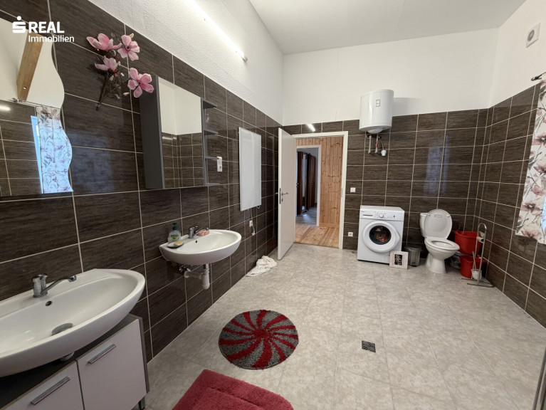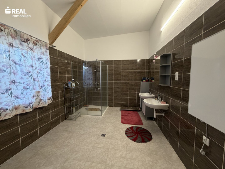 - Bad mit 2 Waschbecken, einer Walk-in-Dusche, Waschmaschinenanschluss, WC sowie Fenster ca. 11,70 m²
