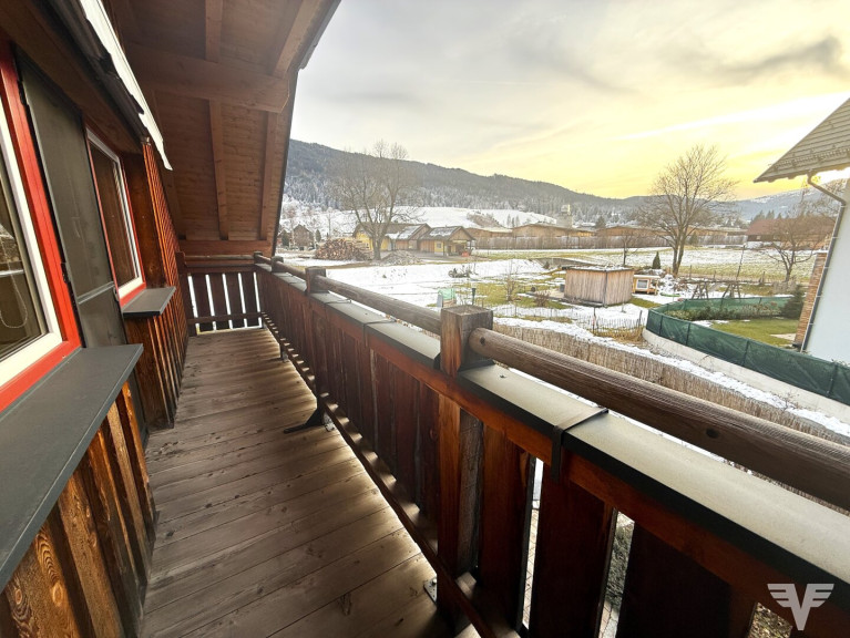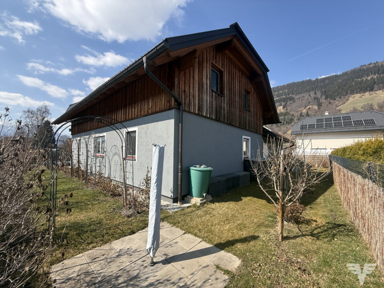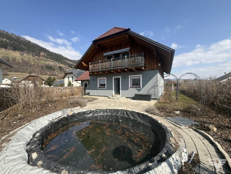 Das Haus ist außen mit viel Holz und speziellen Holzdesigns im Landhausstil gestaltet und weist einen Wohn-Essbereich mit einem Kachelofen und eine angeschlossene Küche, 5 Zimmer, 3 Bäder und 1 Gäste-WC auf.