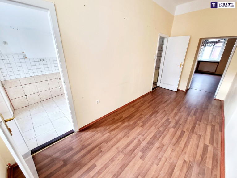 Ihre neue Wohnung ist aktuell sanierungsbedürftig und bietet Ihnen die Chance, Ihre Wünsche umzusetzen! Sie teilt sich in einen Vorraumbereich mit angeschlossener Küche, ein kleines hofseitiges Arbeits- oder Schlafzimmer, ein Badezimmer mit Dusche und WC, ein geräumiges Wohn-Esszimmer sowie ein gemütliches Schlafzimmer.