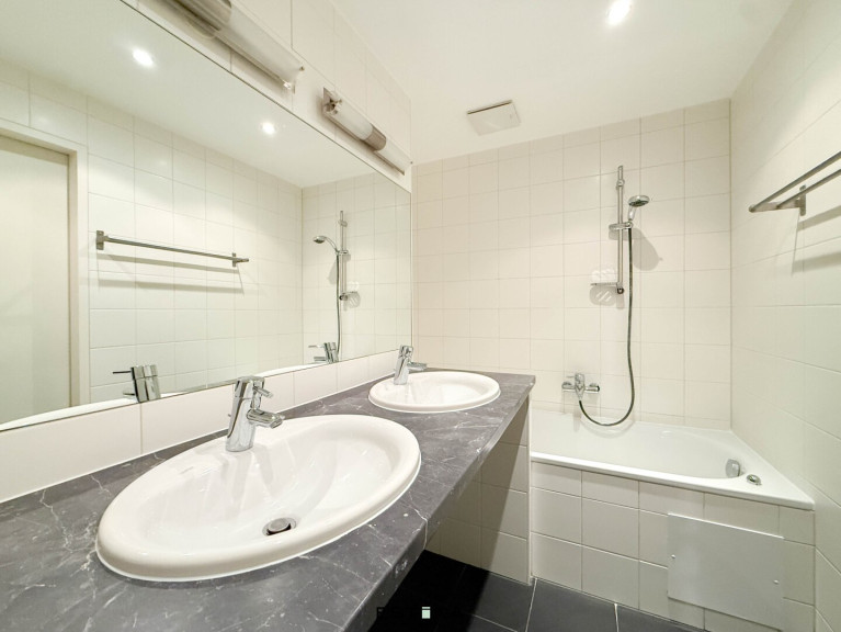 - 2 Badezimmer (Badewanne und Doppelwaschbecken, Dusche, Waschbecken und Toilette)
