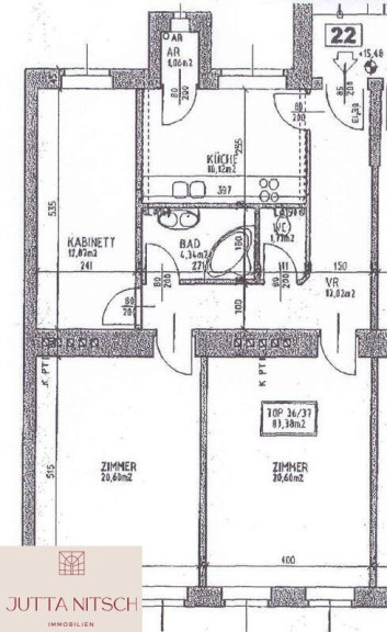- zwei große Zimmer (je 20,60 m2)