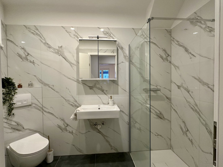 - Badezimmer MIT bodengleicher Duscher, WC und Waschmaschinenanschluss