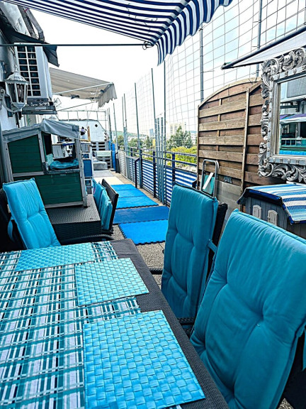Ein besonderes Highlight dieser Immobilie ist die großzügige ca.43m² Terrasse mit einer 5,5 Meter elektrischen Markise, die Ihnen einen atemberaubenden Blick über die Dächer Wiens bietet. Hier können Sie entspannt die Abendsonne genießen oder fröhliche Stunden mit Freunden und Familie verbringen.