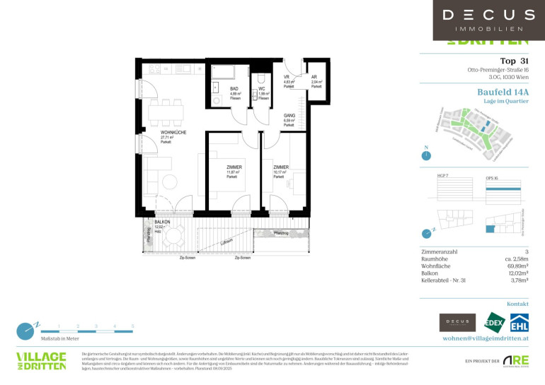 Nähere Informationen zu den Wohnungen auch online unter: https://villageimdritten.at/wohnungsfinder/