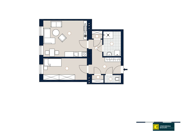 Auf rund 51 m² Wohnfläche im 2. Liftstock erwartet Sie ein durchdachter Grundriss mit Vorraum, Abstellraum, separatem WC, modernem Badezimmer, ruhigem Schlafzimmer sowie einer großzügigen Wohnküche.
