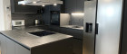 - Wohnküche mit voll ausgestatteter DAN-Küche mit Induktionskochfeld und Backofen (Gorenje), Dunstabzugshaube, Spüle (blanco), Side-by-Side Kühlschrank mit cubed & crushed ice Spender (Samsung),