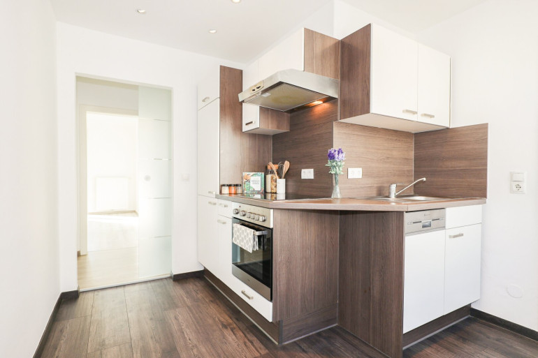 - Moderne Einbauküche: Voll ausgestattet mit Kühlschrank, Backofen, Ceranfeld, Geschirrspüler und reichlich Stauraum – hier bleiben keine Wünsche offen.