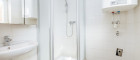 Das moderne Badezimmer ist mit einer Dusche und einem Spiegelschrank ausgestattet – ideal für entspannte Wohlfühlmomente. Die separate Toilette sorgt für zusätzlichen Komfort.