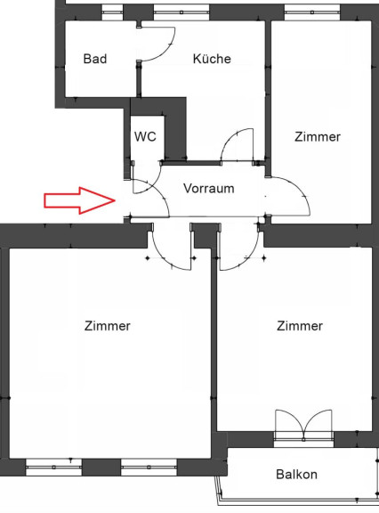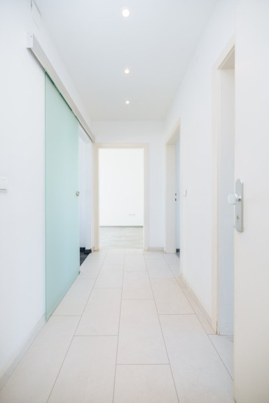 Beim Betreten der Wohnung empfängt Sie ein großzügiger Vorraum, der mit hochwertigen Einbauspots ideal ausgeleuchtet wird. Hier finden Sie ausreichend Platz für eine Garderobe und Stauraum. Alle Zimmer der Wohnung sind separat vom Vorraum aus begehbar, was sie ideal für Familien oder Wohngemeinschaften macht.