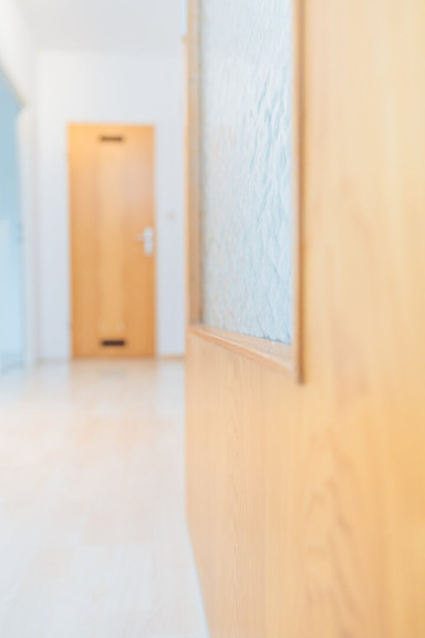 Beim Betreten der Wohnung empfängt Sie ein freundlicher Vorraum mit ausreichend Platz für Ihre Garderobe. Rechter Hand befindet sich das separate WC mit Fenster und Handwaschbecken – ein praktisches Detail, das Komfort und Funktionalität vereint.