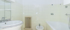 Das Badezimmer ist klassisch gefliest und mit Badewanne und Waschbecken ausgestattet. Das WC befindet sich separat und verfügt über ein Handwaschbecken – besonders praktisch bei Mehrpersonenhaushalten. Ein eigener Abstellraum bietet zusätzlichen Stauraum.