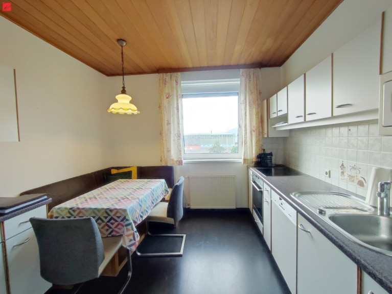 In der Mitte befindet sich die Küche, in der Sie köstliche Speisen zubereiten können, um diese an lauen Sommerabenden auf der voll ausgebauten, ca. 6 m² großen Loggia zu genießen.