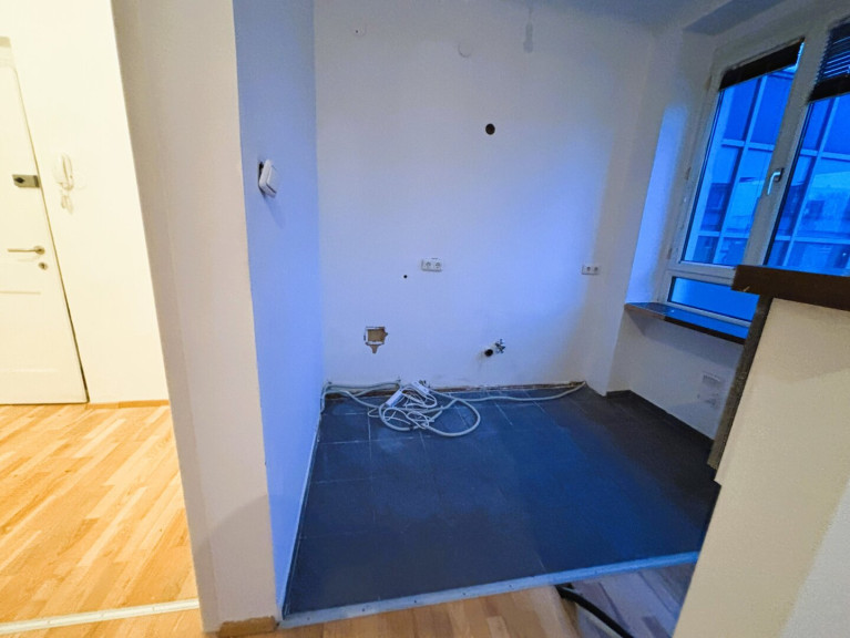 Die Küche ist nicht möbliert und kann nach eigenen Wünschen gestaltet werden. Bei Bedarf wird vom Vermieter eine Einbauküche errichtet - die Mietkonditionen erhöhen sich um Euro 26,71 Euro monatlich.