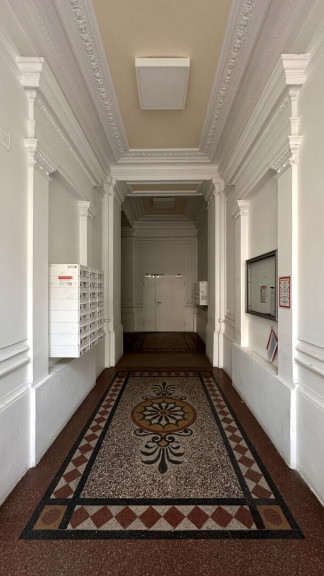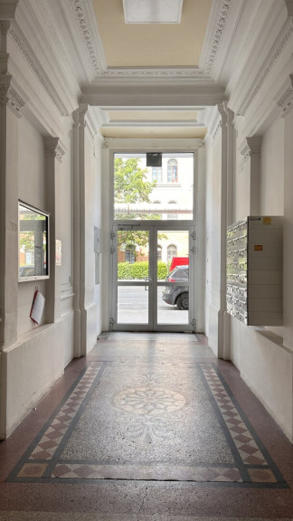 In fünf Minuten zu Fuß von der Alten Börse und in fünfzehn Minuten vom Stephansdom befindet sich dieses schöne historische Gebäude aus dem Jahr 1880. Im Jahr 2010 wurden zusätzliche Stockwerke ausgebaut. Genau auf diesem neuen fünften Stockwerk liegt diese wunderbare Wohnung. Die Fenster sind zur Rossauer Kaserne ausgerichtet, und bei gutem Wetter können Sie vom Fenster aus problemlos den wunderschönen Kahlenberg sehen.