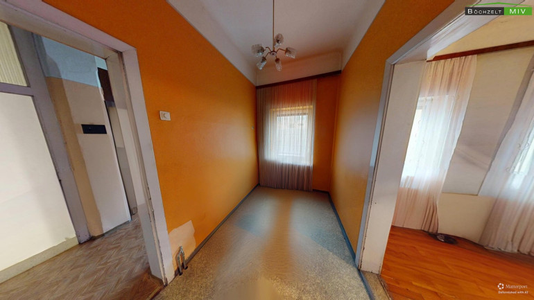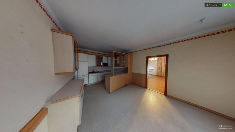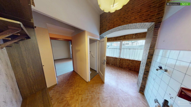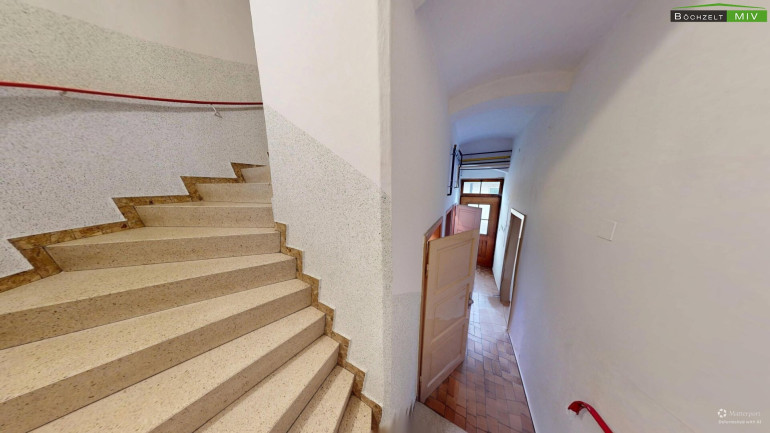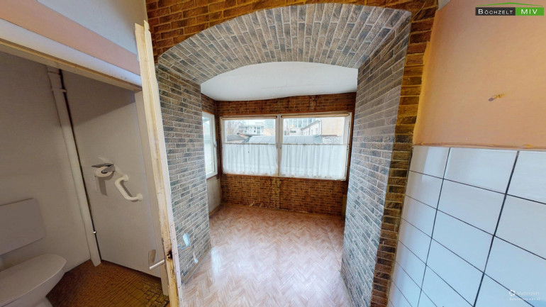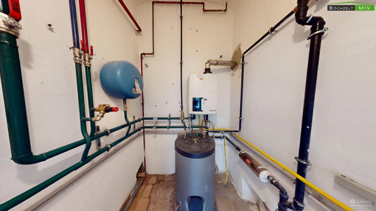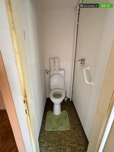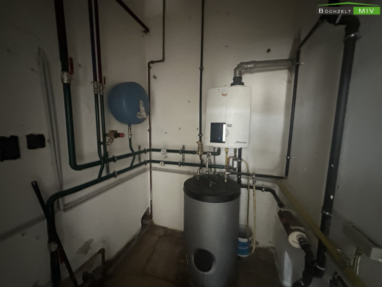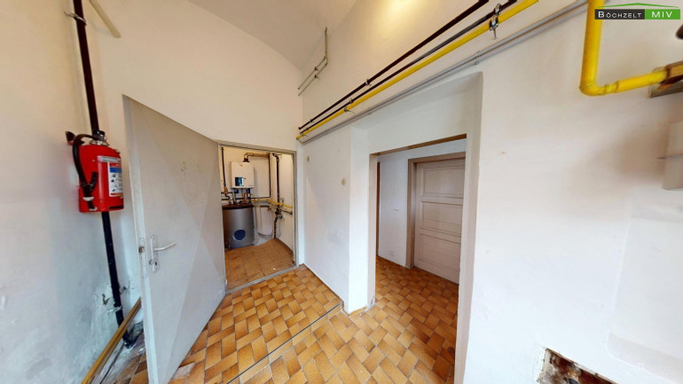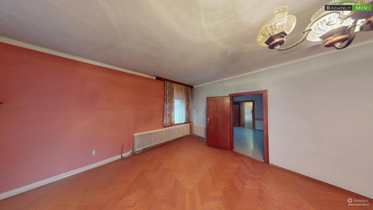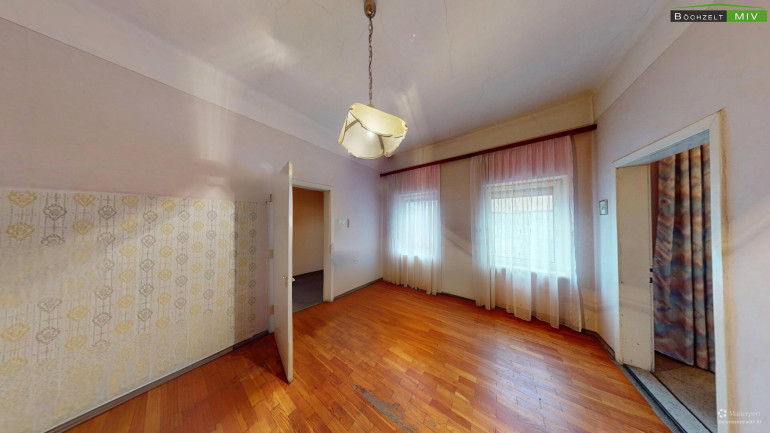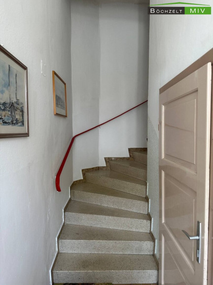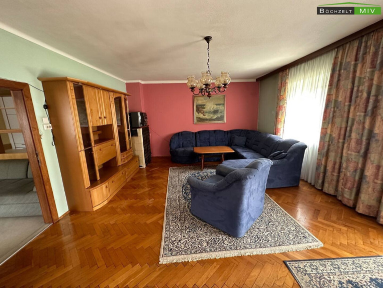 Im Erdgeschoss findet neben dem Vorraumbereich auch ein WC, zwei Abstellräume und einen Heizraum mit der Gastherme. Überdies gibt es noch einen kleinen Keller, der einen alten 40.000 Liter Öl-Tank beherbergt. Über das Stiegenhaus gelangt man in den Vorraum des Obergeschosses, eine geräumige, möblierte Küche führt weiter ins großzügige Wohnzimmer samt Balkon. Die Diele vor den Schlafzimmern war bislang als Esszimmer genutzt, kann aber auch zu einem Durchgangsschlafzimmer umfunktioniert werden. Ein weiteres WC, sowie ein Badezimmer mit Badewanne im Obergeschoss sorgen für optimalen Wohnkomfort. Zwei weitere Durchgangszimmer bieten reichlich Platz für Schlafzimmer. Vom Vorraum im Obergeschoss gelangt man in den unausgebauten Dachboden. Neben dem Haupteingang im Erdgeschoss liegt ein separater Eingang mit ca. 31 m² mit 2 Zimmern die als Büro, kleine Garçonnière oder als Lager genutzt werden können.