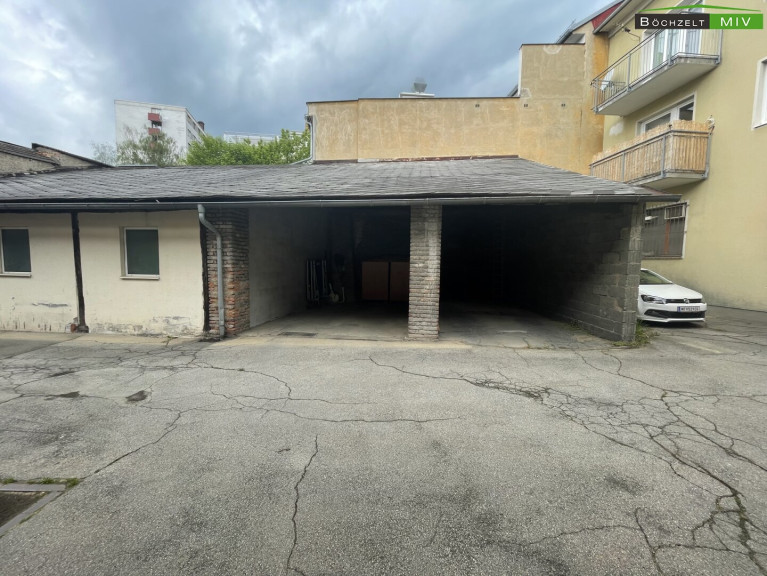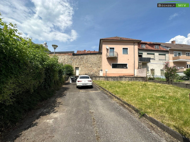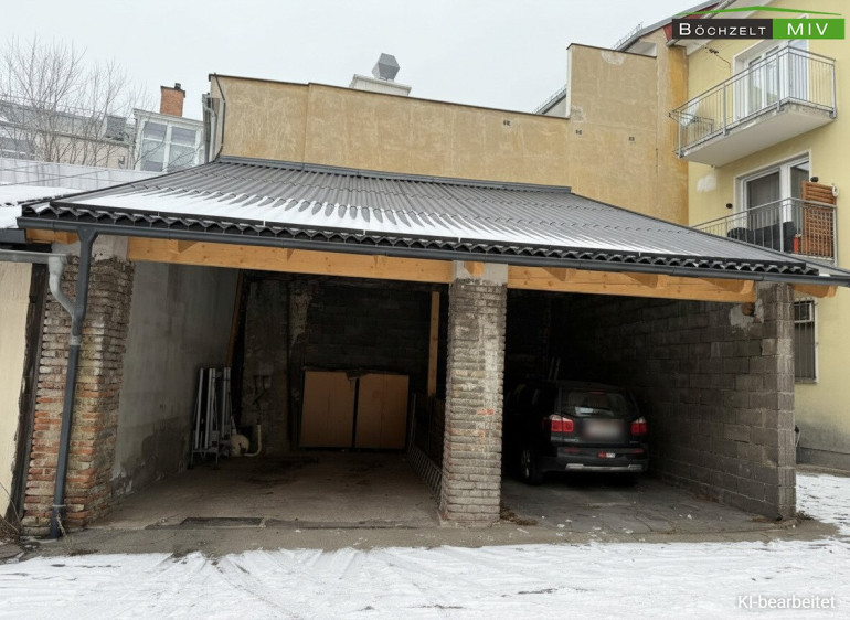 Die Liegenschaft verfügt über eine ins Gebäude integrierte Doppelgarage mit ca. 53 m² sowie 2 Carportstellplätze welche auch für Wohnwägen geeignet wären. Die Carportstellplätze verfügen über eine Einfahrtsbreite zwischen 3,5 - 3,9 Meter und sind 3 Meter hoch. Weiters gibt es im Innenhof, sowie neben dem Garten Platz für weitere 2 - 4 Autos. Die Garage, sowie die Carport-Stellplätze sind derzeit vermietet. Die Mietverträge sind jedoch mit kurzen Fristen jederzeit kündbar. Die Jahresmieteinnahmen für Carports und Doppelgarage belaufen sich derzeit auf 4.685 € pro Jahr (brutto). Ein Teilbereich des Carportgebäudes steht seit Jahrzehnten am Grundstück der Nachbarliegenschaft. Der Garten, sowie die knapp 20 m² Terrasse der Liegenschaft samt zweiter Zufahrt lassen sich von der dahinterliegenden Schmittstraße, sowie über eine Verbindungstür in der ehemaligen Stadtmauer erreichen. Sollten Sie keinen Garten benötigen liegt eine Entwurfsplanung für die Errichtung von 4 Fertigteilgarage vor, die Planung wurde bislang noch nicht eingereicht - die Liegenschaft kann auch ohne das Gartengrundstück zu einem Preis von 229.000 € erworben werden.