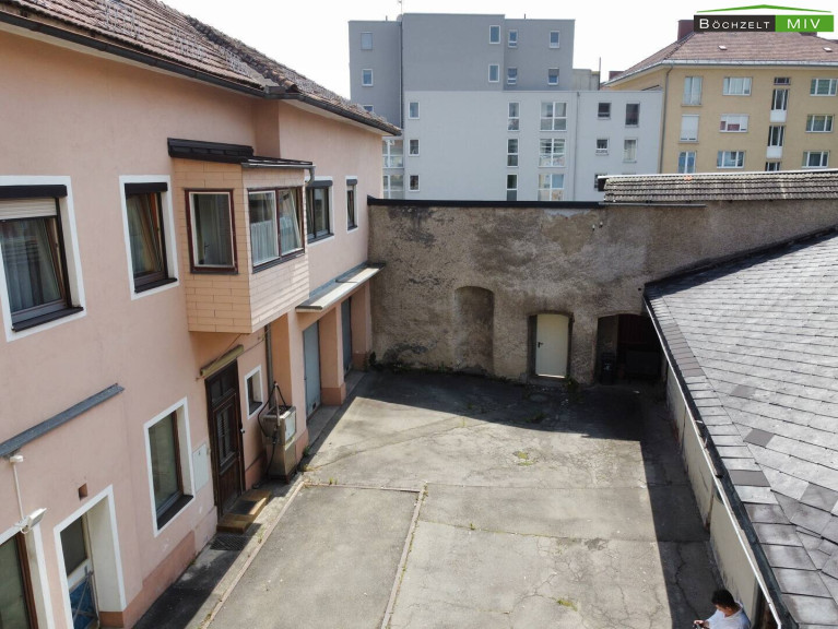 Die Innenstadtliegenschaft besteht aus dem Haupthaus mit integrierter Doppelgarage, dem Wohnbereich, welcher sich auf das Erd- und Obergeschoss verteilt, sowie einem zusätzlichen Bereich im Erdgeschoss mit ca. 31 m², der ideal zu einer kleinen Garçonnière oder einem Büro umgebaut werden kann. Zudem bestehen noch 2 Carportabstellplätze im Innenhof, sowie der Garten samt zusätzlicher Zufahrt Richtung Schmittstraße.