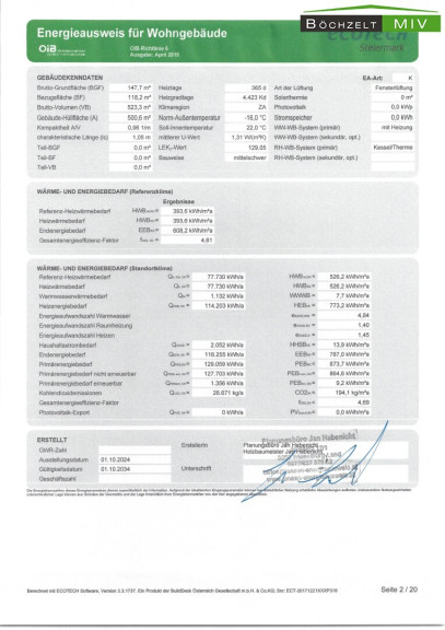 | Heizwärmebedarf: | G 526,20 kWh/m²a |