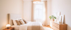 Das Schlafzimmer liegt ruhig und klar geschnitten - ein Ort zum Abschalten und Wohlfühlen. Auch hier setzt sich das elegante Bodenbild fort und vermittelt klassische Wohnqualität mit angenehmer Ruhe.