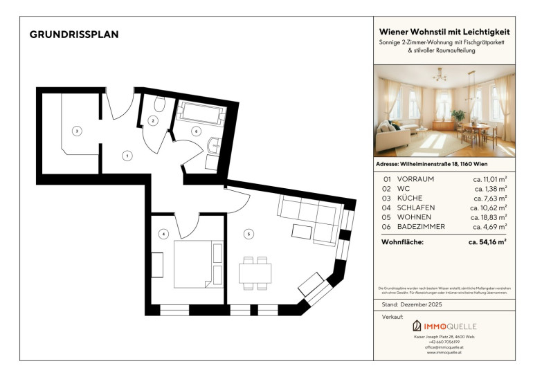 Die Lage? Die Lage bietet alles, was man sich in Wien wünscht: hervorragende Anbindung durch U3, S-Bahn und mehrere Straßenbahnlinien. Das Schottentor erreichen Sie in ca. 19 Minuten, den Stephansplatz in rund 30. Für Erholung und Freizeit ist der Wilhelminenberg mit seinem Weitblick und Spazierwegen in der Nähe. Wer das bunte Stadtleben liebt, findet im nahen Yppenviertel Cafés, Restaurants und Märkte mit internationalem Flair.