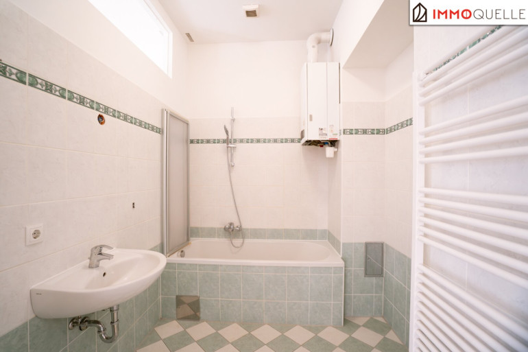 Das Badezimmer ist mit einer Badewanne, einem Waschbecken und einem Handtuchheizkörper ausgestattet. Zudem befindet sich hier der Anschluss für die Waschmaschine. Das WC ist separat angelegt - praktisch und komfortabel zugleich.