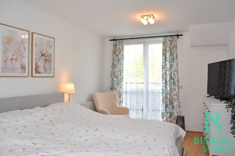 Im 3. Liftstock gelegen, sind auf einer Wohnfläche von ca. 60m² ein Vorraum, ein Wohnzimmer und ein Schlafzimmer gartenseitig, eine Küche und ein Bad mit Wanne & Waschtisch, ein Abstellraum und ein separates WC vorhanden. Der besondere Charme der Wohnung besteht darin, dass beide Zimmer über einen ca. 3,5m² großen Balkon mit Grünblick verfügen.