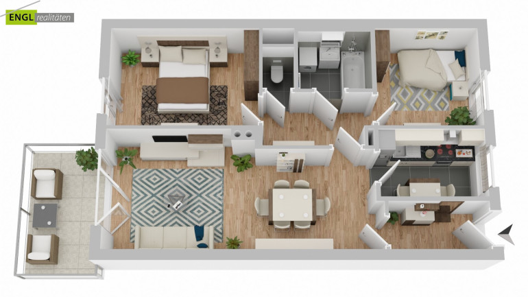 Helle 3-Zimmer Wohnung mit perfekter Raumaufteilung, mit sonniger und geräumiger Loggia.