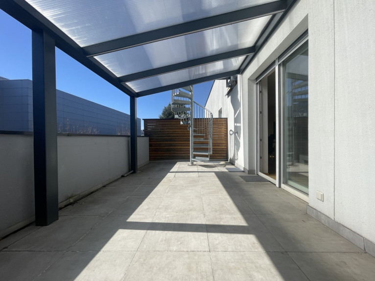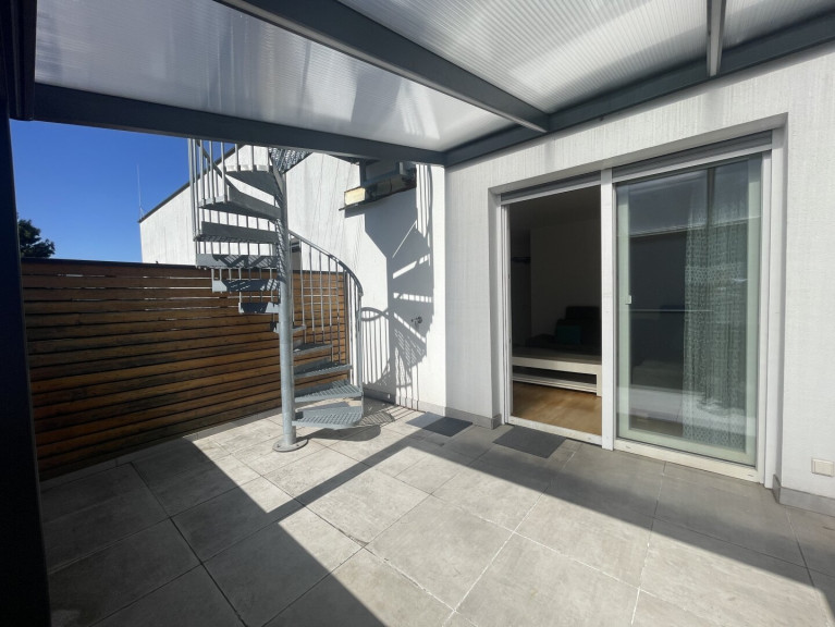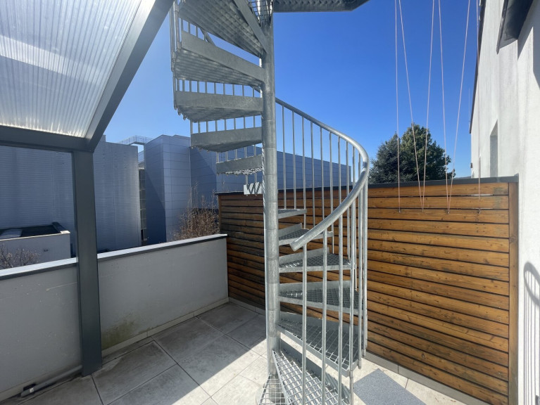 Wendeltreppe die einzigartige Dachterrasse mit Rundumblick. Diese Wohnung