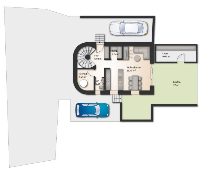 Gerade die kleine Grundstücksgröße ist hier ein Vorteil:
