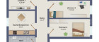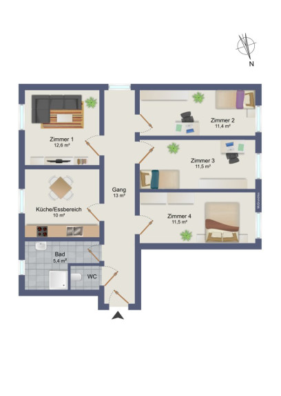 76,5 m² – aufgeteilt auf 4 Zimmer, großzügigen Koch-/Essbereich, Badezimmer, separates WC und Flur