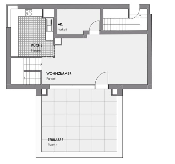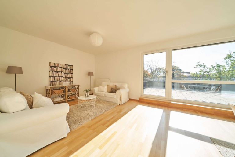 + geräumiges Wohnzimmer (Deckenhöhe 2,62m!) mit Ausgang zur großen Dachterrasse