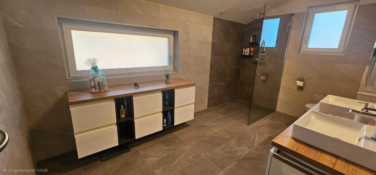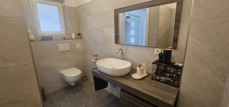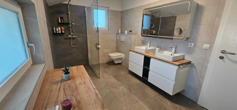 Die beiden Bäder und WCs sind ideal aufgeteilt, sodass auch bei voller Belegung des Hauses jeder Bewohner seinen eigenen Rückzugsort hat. Dies sorgt für zusätzlichen Komfort und Privatsphäre im Alltag.