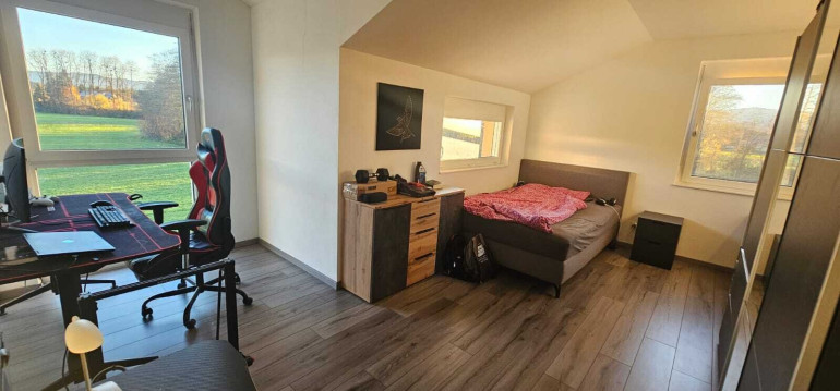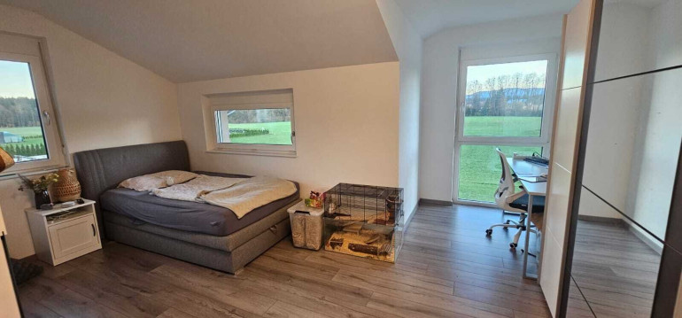 Das Haus erstreckt sich über 2 Etagen und bietet Ihnen ein lichtdurchflutetes Wohnambiente. Mit insgesamt fünf Zimmern stehen Ihnen zahlreiche Möglichkeiten zur Verfügung, sei es als Schlafzimmer, Arbeitszimmer, Speisekammer oder Spielzimmer für die Kinder. Die großen Fenster sorgen nicht nur für eine angenehme Atmosphäre, sondern bieten auch einen herrlichen Ausblick auf die umliegende Natur.