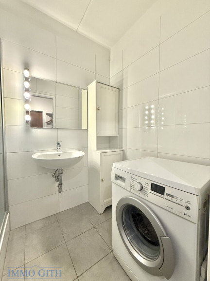 Ein modernes Badezimmer mit Dusche und Waschmaschinenanschluss sowie ein separates WC runden das praktische Raumangebot ab. Ein Kellerabteil gehört selbstverständlich zur Wohnung. Zusätzlich steht den Bewohnern ein großer gemeinschaftlicher Fahrradkeller zur Verfügung.